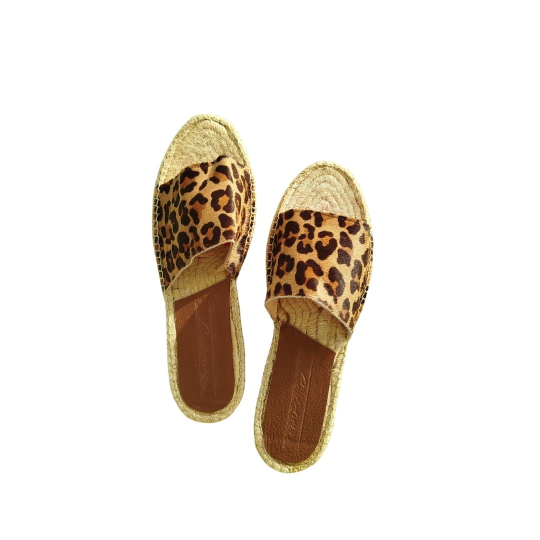 Mules en cuir cousues main - Léopard GRANDE TAILLE