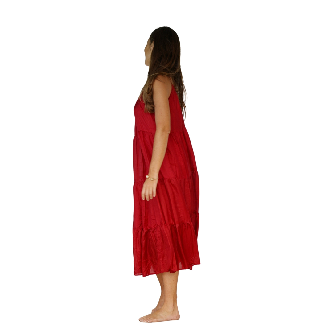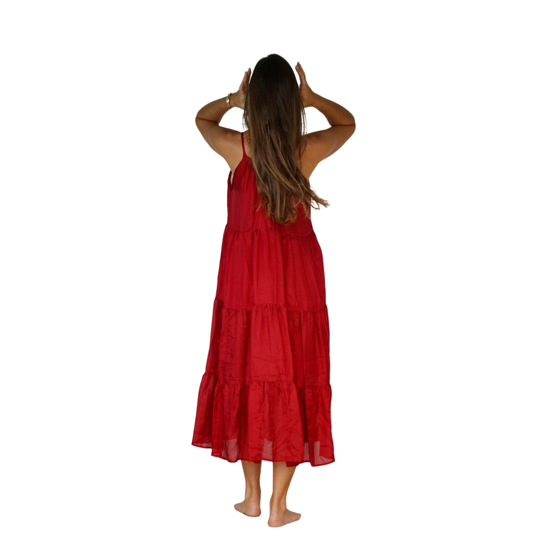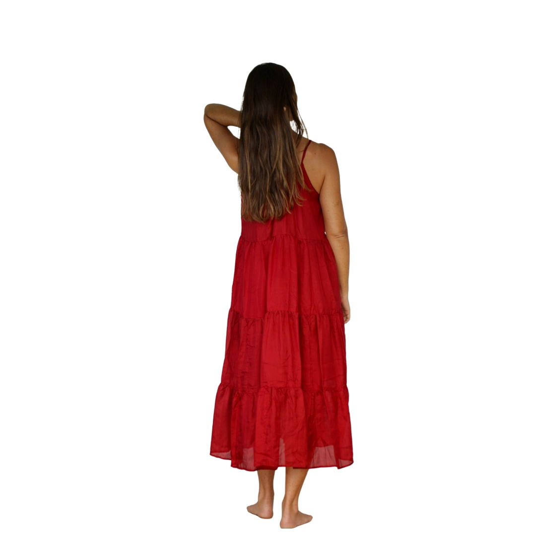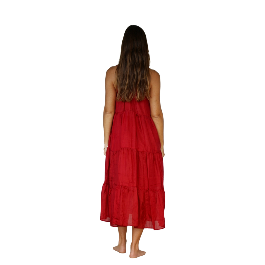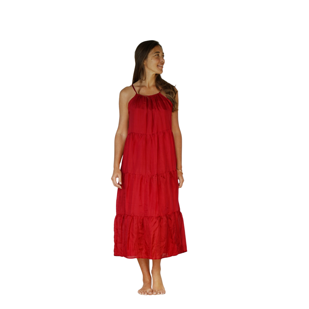 Cette robe élégante , confectionnée en soie vietnamienne , séduit par sa fluidité et son éclat naturel. Sa couleur bordeaux profonde incarne à la fois la chaleur et le raffinement, idéale pour les occasions spéciales.