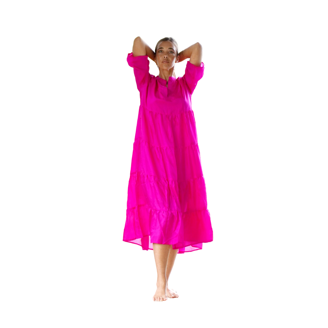 Faites rayonner votre style avec cette robe longue en soie fuchsia , à la fois chic , confortable et intensément féminine . Sa matière douce et fluide offre un tombé léger & une sensation de fraicheur, idéale pour les journées d'été.